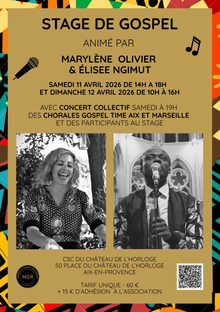 Concert collectif le samedi 11 avril à 19h avec les chorales Gospel Time Aix, Gospel Time Marseille, et les participants au stage !